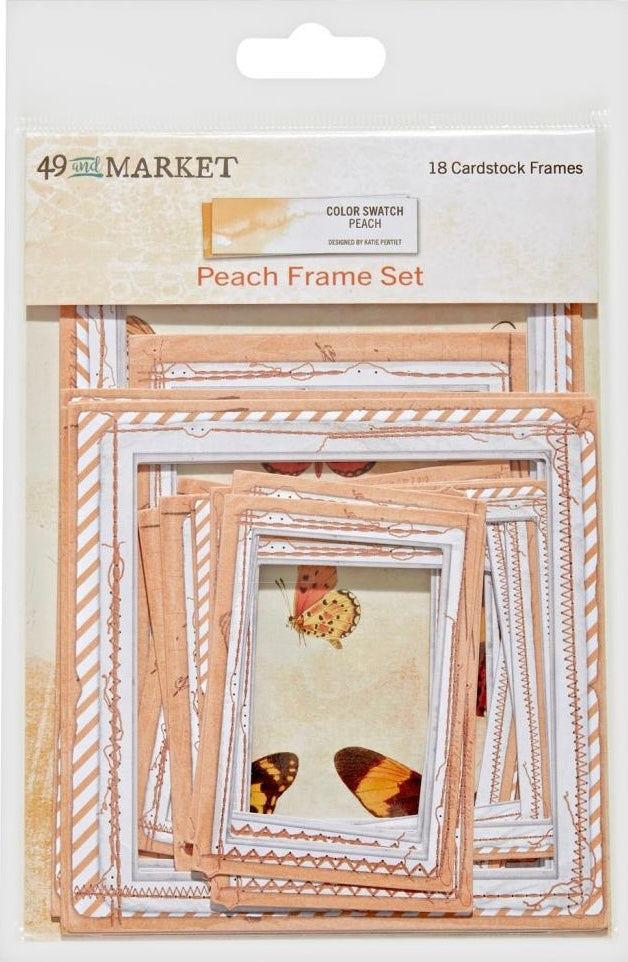 18 assorted faux-stitched cardstock frames in varying sizes. Sized to fit: 2x3 inch, 3x4 inch, 4x6 inch, 3x3 inch and 4x4 inch photos.