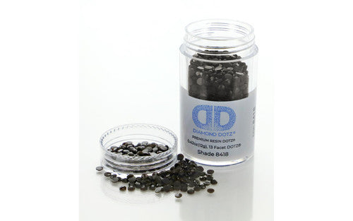 Scratch resistant resin dot gems have 13 facets for a diamond like effect.