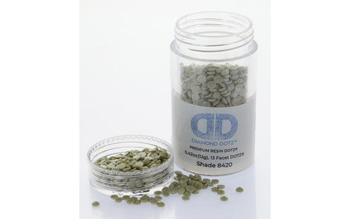 Scratch resistant resin dot gems have 13 facets for a diamond like effect.