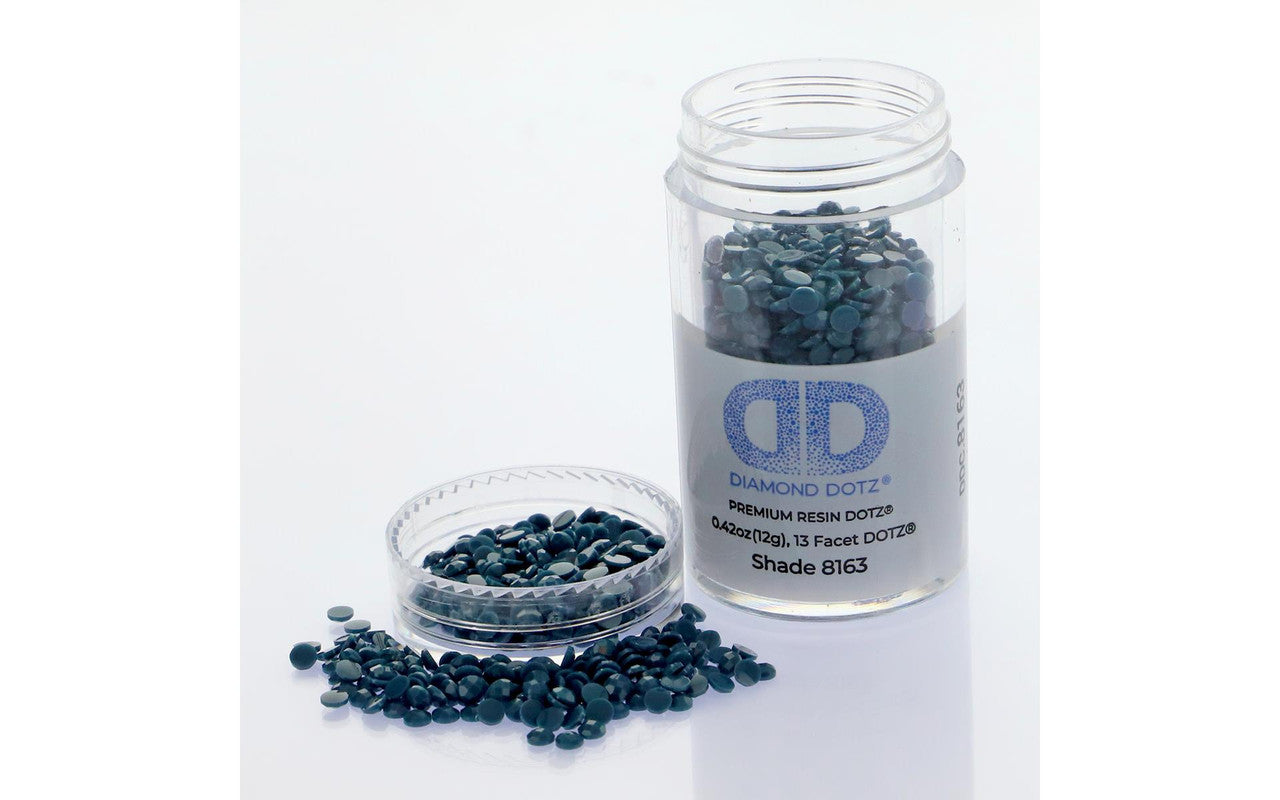 Scratch resistant resin dot gems have 13 facets for a diamond like effect.