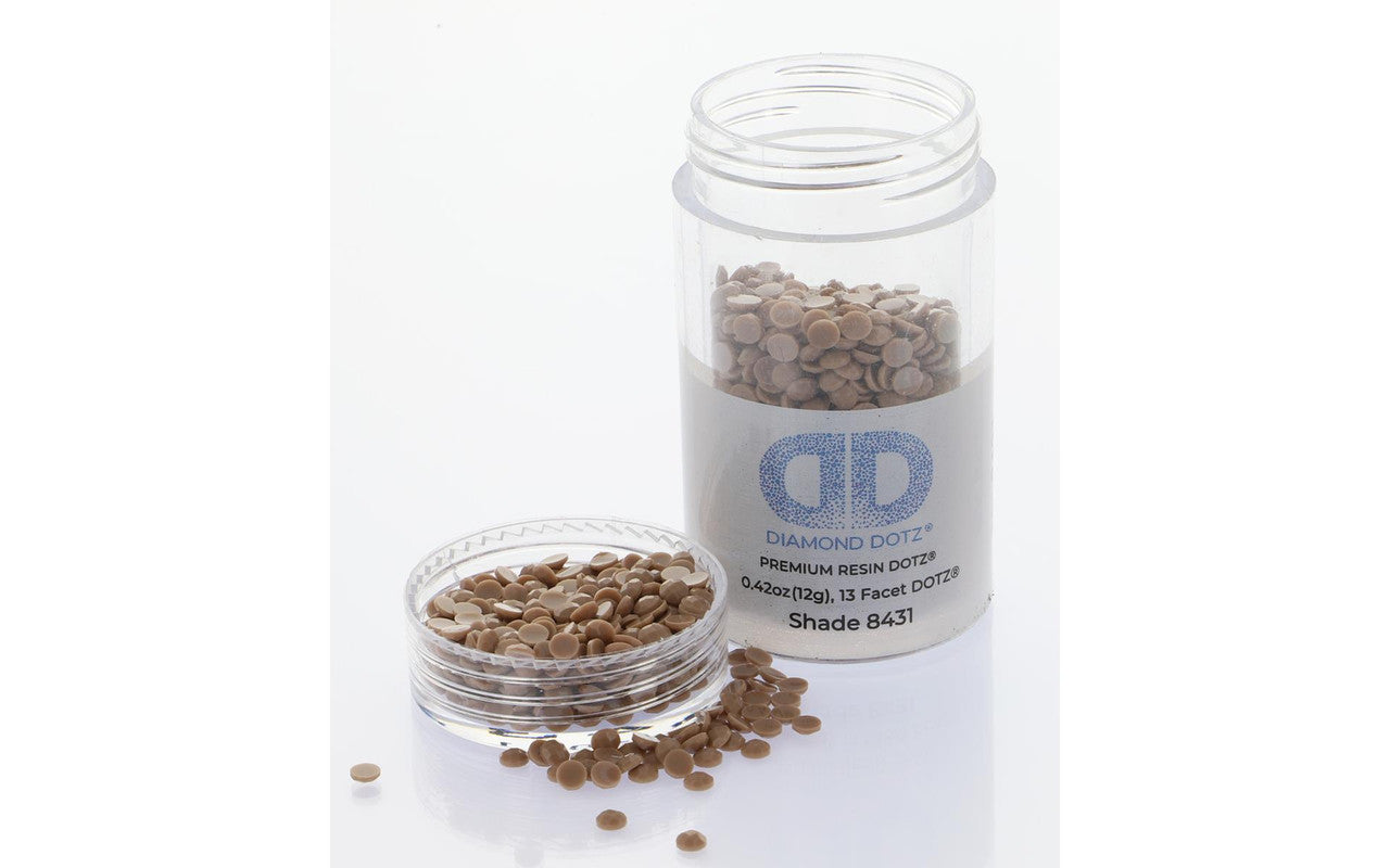 Scratch resistant resin dot gems have 13 facets for a diamond like effect.