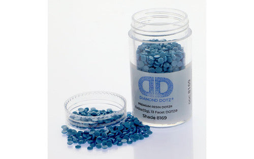 Scratch resistant resin dot gems have 13 facets for a diamond like effect.