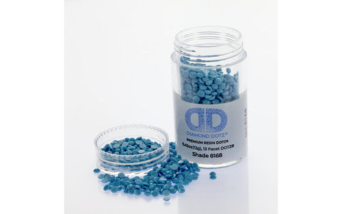 Scratch resistant resin dot gems have 13 facets for a diamond like effect.