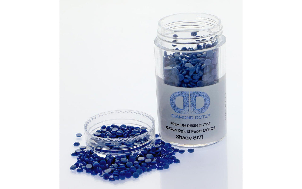 Scratch resistant resin dot gems have 13 facets for a diamond like effect.