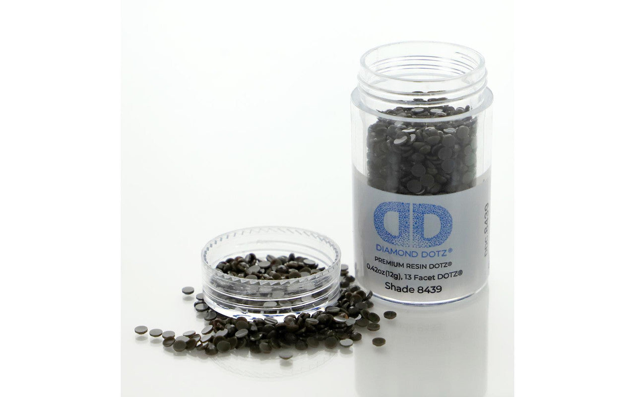 Scratch resistant resin dot gems have 13 facets for a diamond like effect.