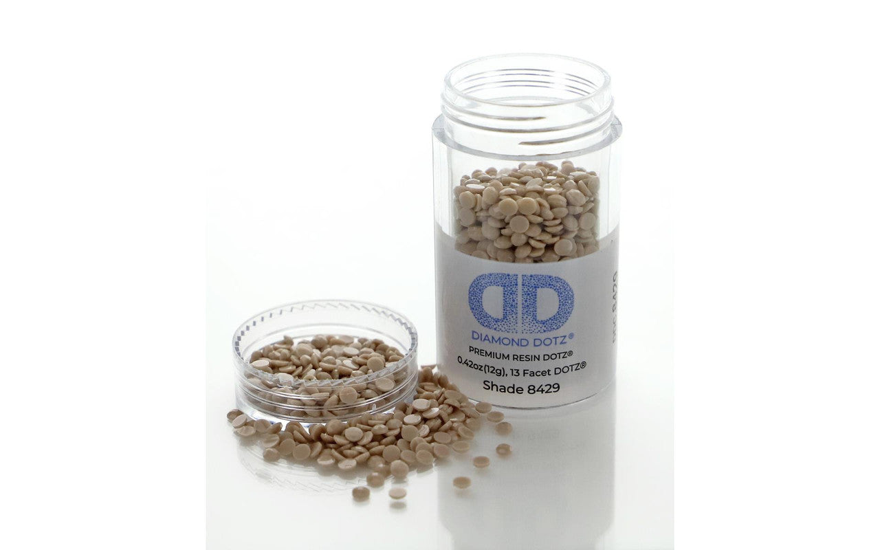 Scratch resistant resin dot gems have 13 facets for a diamond like effect.