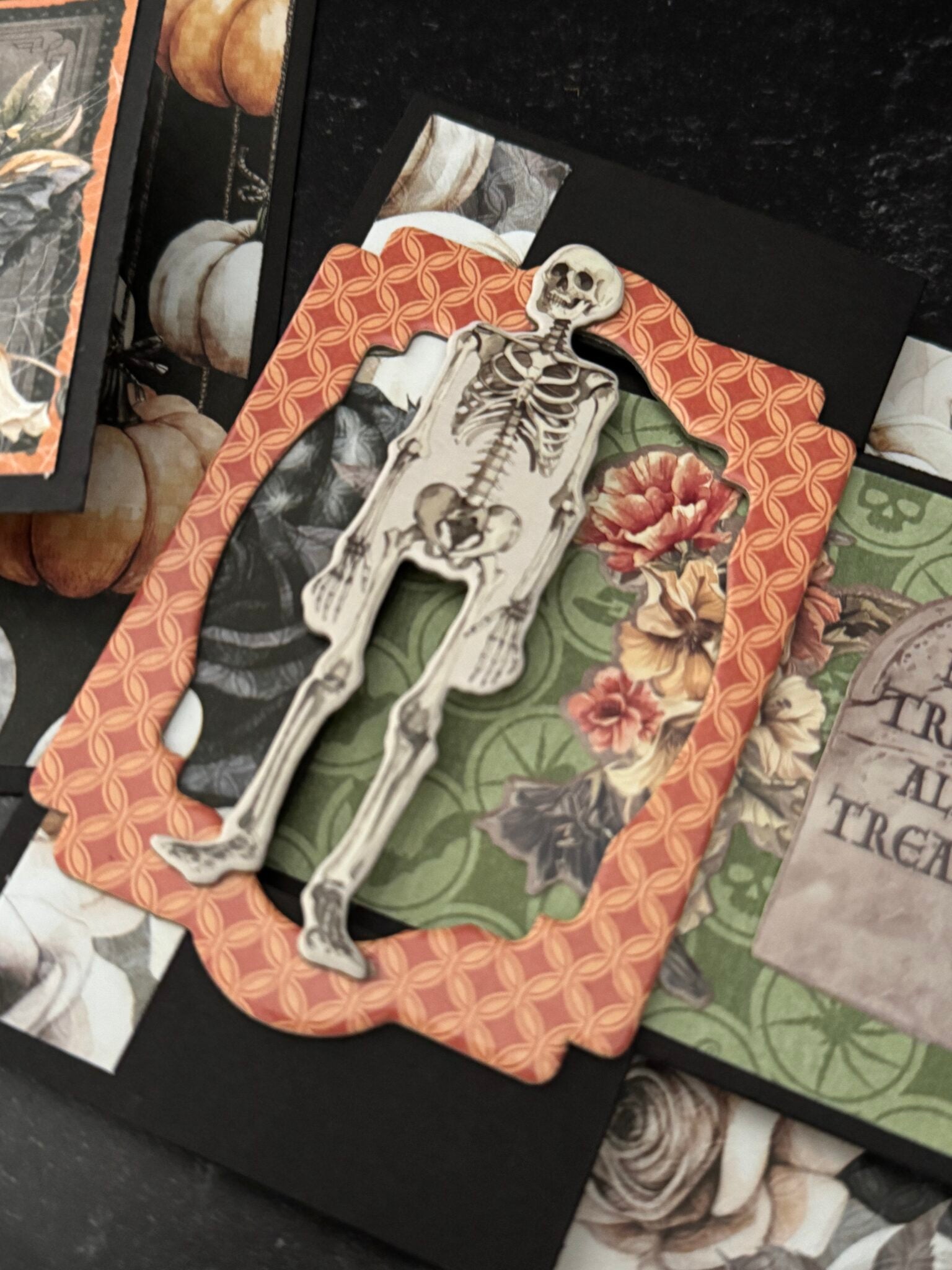 Includes Halloween paper, stickers, chipboard, and card bases with envelopes