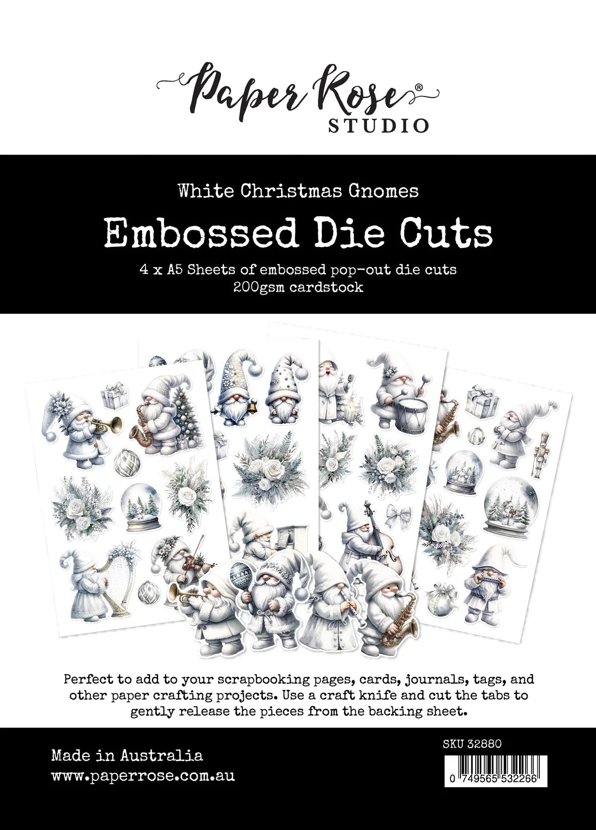 Paper Rose Studio White Christmas Gnomes Embossed Die Cuts