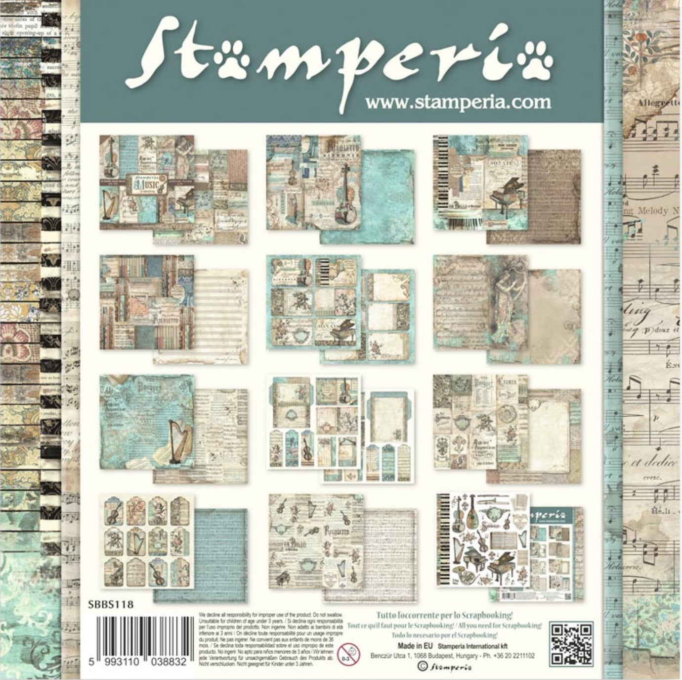Stamperia Music 8” x 8” Paper Pad