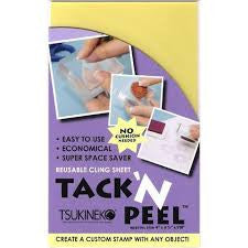 La hoja transparente Tsukineko/Imagine Craft Tack 'n Peel es un producto único y reutilizable diseñado para crear un bloque de estampado. El Tack 'n Peel transparente permite una fácil alineación en bloques acrílicos, ¡y su diseño terminado tendrá ese toque profesional! Simplemente enjuagar la superficie con agua y secar al aire puede conservar fácilmente la capa adhesiva. La pegajosidad se restaurará una y otra vez. Tack 'n Peel se puede utilizar en bloques de acrílico o de madera; sin embargo, su característica única permite que cualquier superficie plana o curva también se convierta en un mango para estampar.