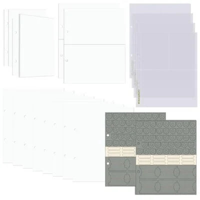 Het album meet 8,25 x 8,72 x 2,5 (bedoeld voor 6×8 pagina's in een ringband met 6 ringen). Inclusief: 6 paginabeschermers (1 per stijl), 3 bedrukte spaanplaatpagina's met tabbladen, 3 diverse flippagina's in kraftpapier, 3 6×8 kraftpagina's, 1 plastic zakje met ritssluiting.
