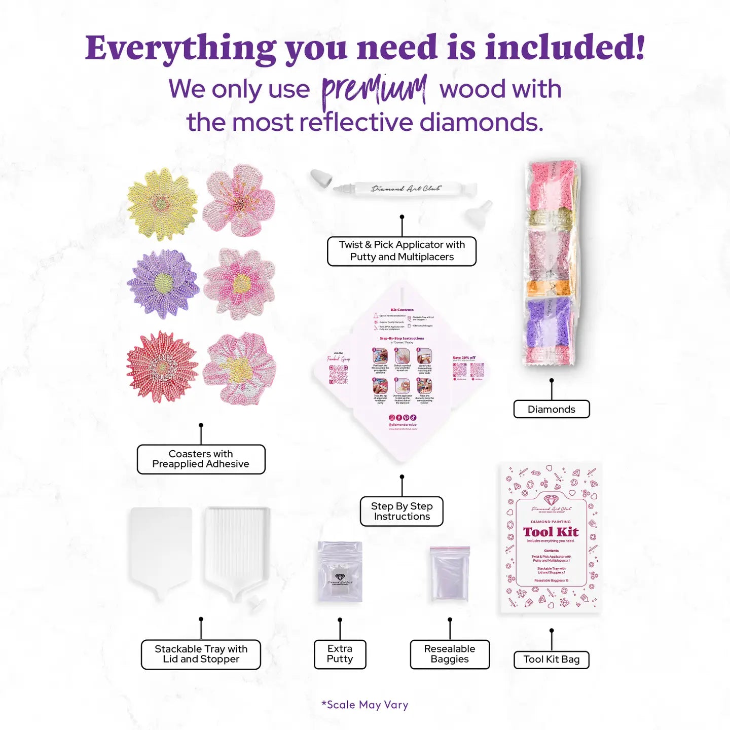 Diamond Art Club Coasters - Flowers (6 Pk)