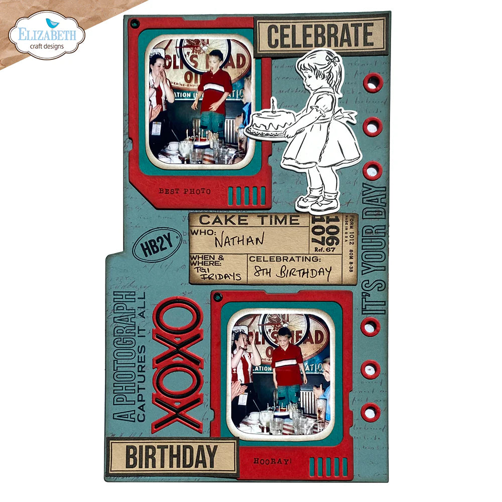 This set includes a little girl holding a birthday cake, along with a coordinating die and various stamps to document birthdays and celebrations.