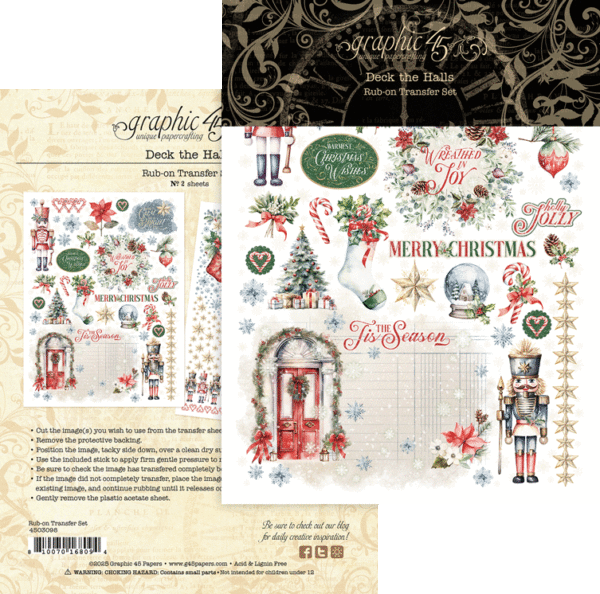 Graphic 45 Deck the Halls Rub-On Transfer Set