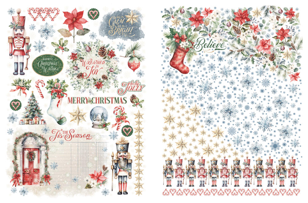 Celebrate the magic of the season with Graphic 45’s Deck the Halls Paper Collection – a festive journey into the heart of holiday cheer. This charming Christmas collection is wrapped in classic yuletide imagery, from nutcrackers and jolly stockings to pinecones, poinsettias, and plaid. Set against a cozy palette of cranberry red, evergreen, soft cream, and frosty blue, Deck the Halls captures the nostalgic warmth of home for the holidays.