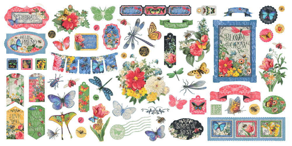 Celebrate the beauty of the natural world with Graphic 45’s Flutter – Keepsake Edition Pack! This over 152-piece collector’s set is a serendipitous tribute to all that’s beautiful in nature—including those bodacious bugs. Playfully sophisticated and bursting with vibrant charm, Flutter features brilliant butterflies, elegant dragonflies, and bold botanicals in a dazzling palette of pinks, periwinkle blues, glorious gray, and vibrant yellow.