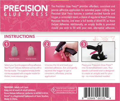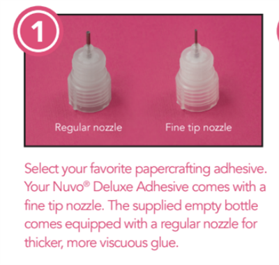 - Choose your favorite adhesive to fill the refillable bottle or use the Nuvo Deluxe Adhesive.