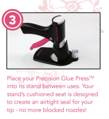- Make sure to put your Precision Glue Press tool on the stand between each use so the nozzle does not get blocked.