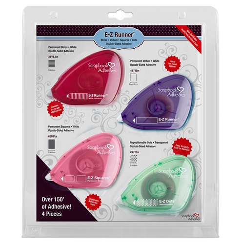 Het Adhesive Dispenser Value Pack biedt u vier verschillende EZ Runner® Original-dispensers in één handig pakket.