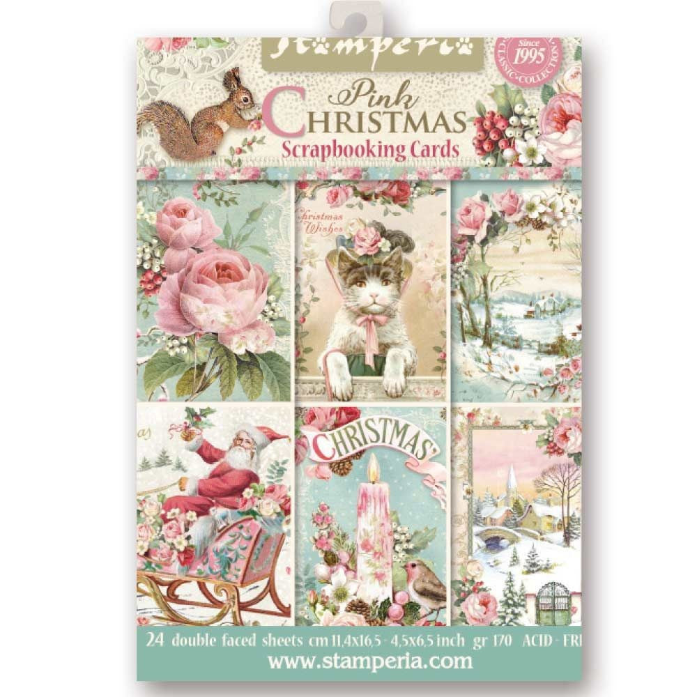 Eén boekje Stamperia Pink Christmas Scrapbooking-kaarten met 24 dubbelzijdige vellen van 4,5 x 6,5. Zuurvrij