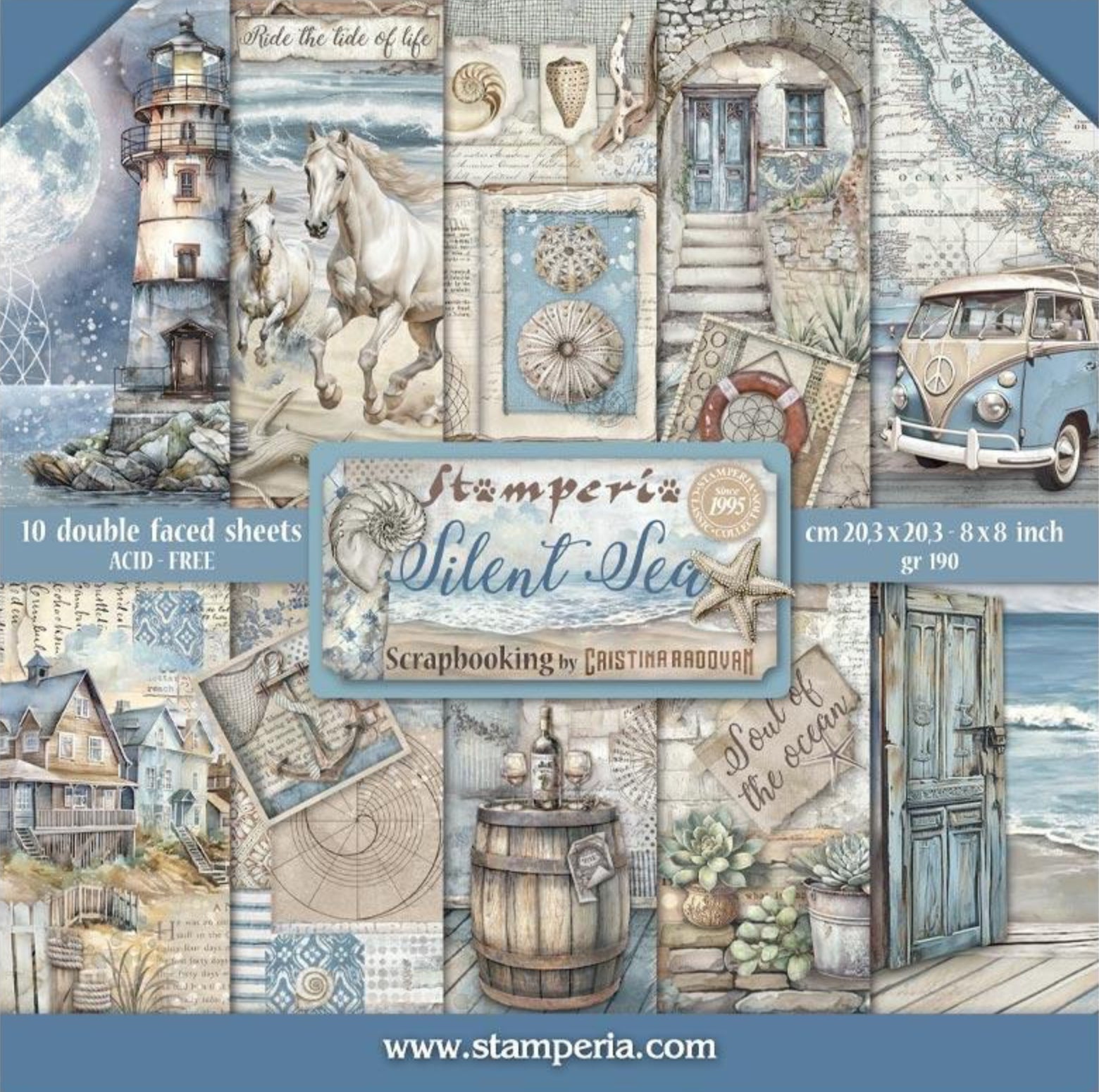 This Silent Sea 8 in x 8 in Paper Pad from Stamperia contains 10 double-sided sheets of high quality, 190gsm paperstock. Featuring beautifully illustrated themed patterns, this decorative paper pad is perfect for cardmaking, scrapbooking, journaling and more.
