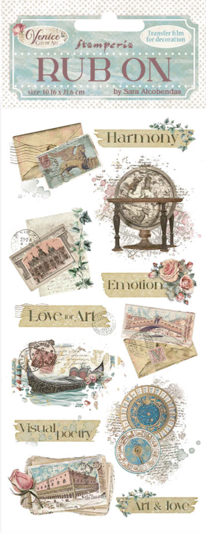 Instant beauty on virtually any surface you can imagine. These transfers are easy to use rub-on transfers that release onto a wide variety of surfaces allowing for a multitude of decor, furniture and multi-media uses. Simply peel off backing, rub-on and transfer a beautifully detailed design to transform your next piece into a work of art. This package contains Stamperia Rub-on 4x8.5 inches.