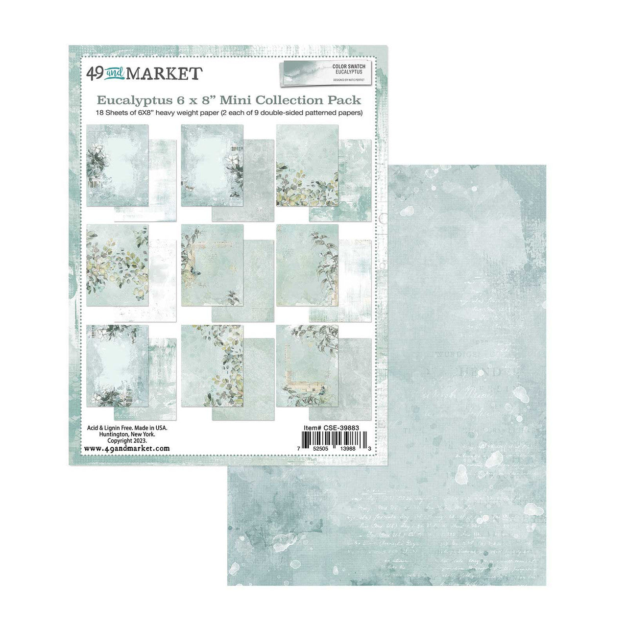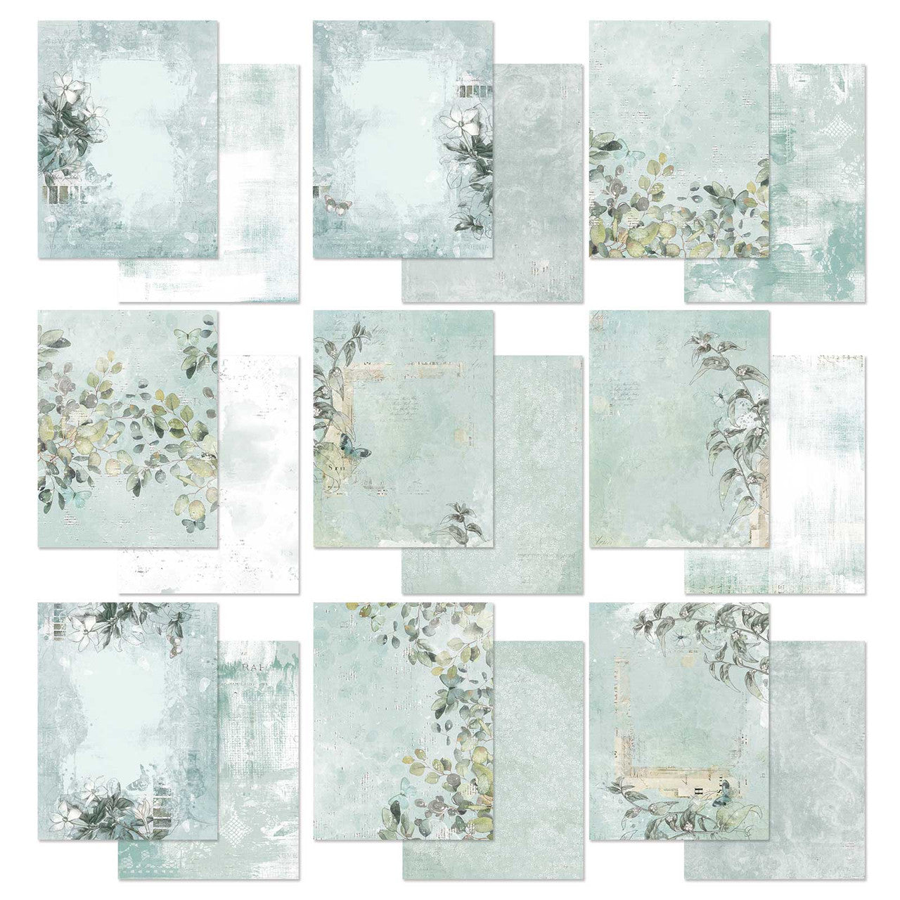 The Eucalyptus 6×8″ Mini Collection Pack includes a total of 18 double-sided papers (2 each of 9 double-sided designs).