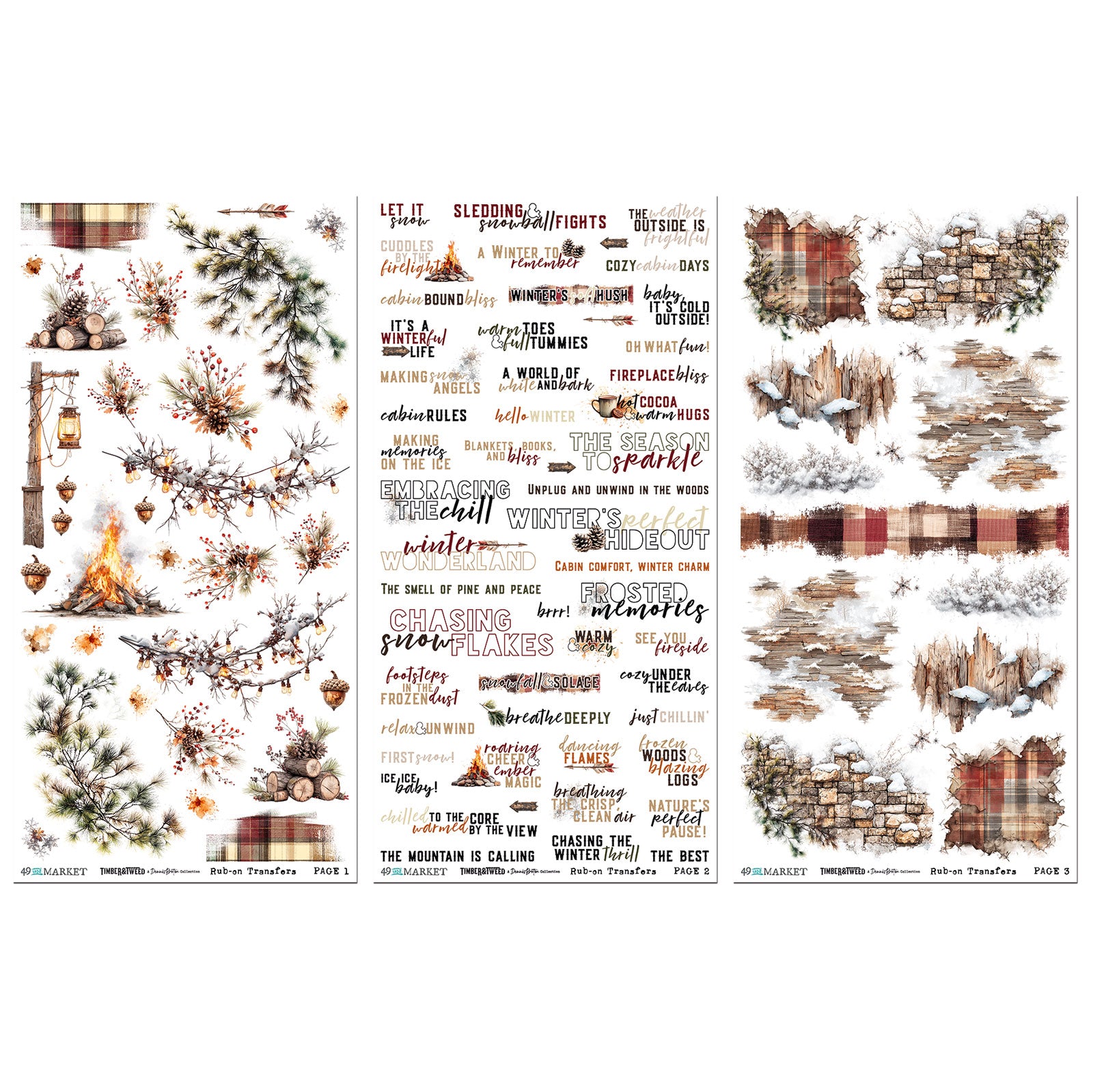 49 & Market Timber & Tweed Essential 6 x 12 Rub-On Transfer Set