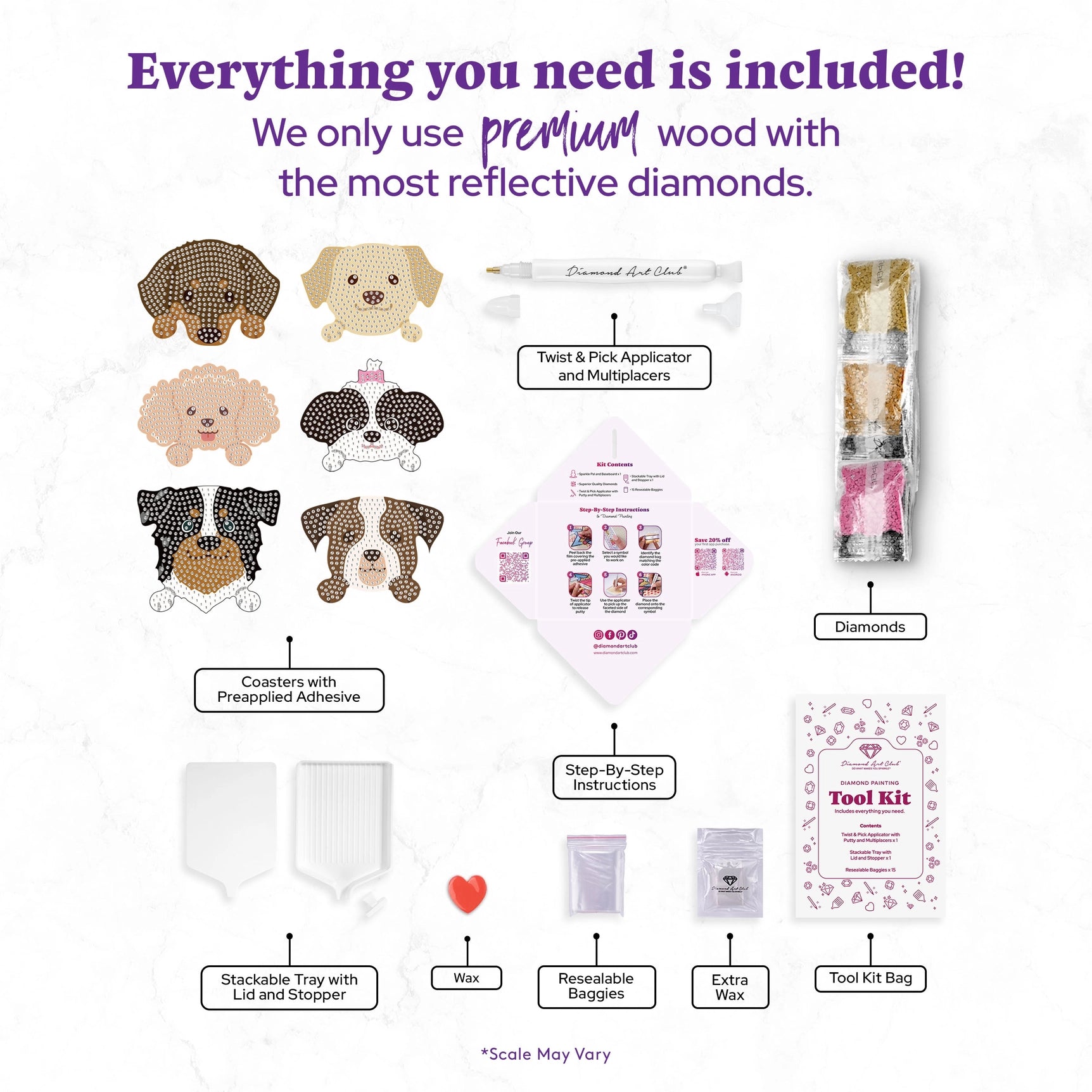 Unleash puppy love with this paws-itively fun DIY diamond art coaster kit! Create a pack of adorable puppies from floppy-eared friends to perky-nosed pals, ready to guard your drinks with cuteness.