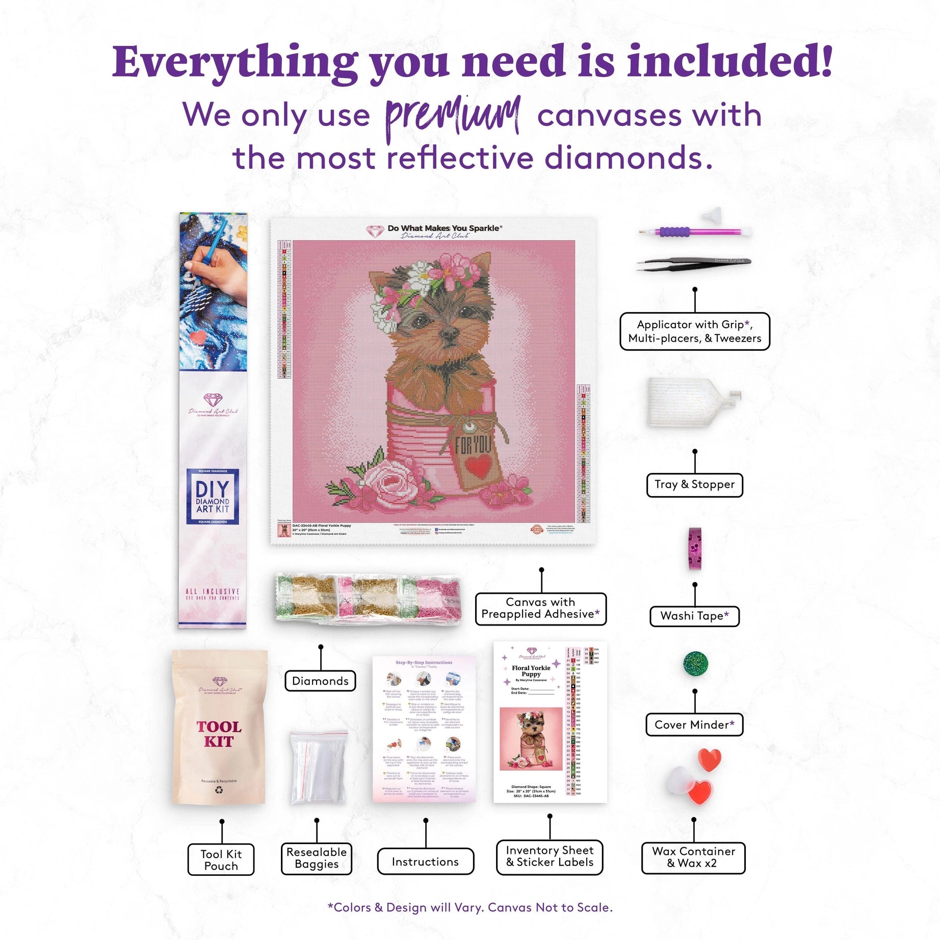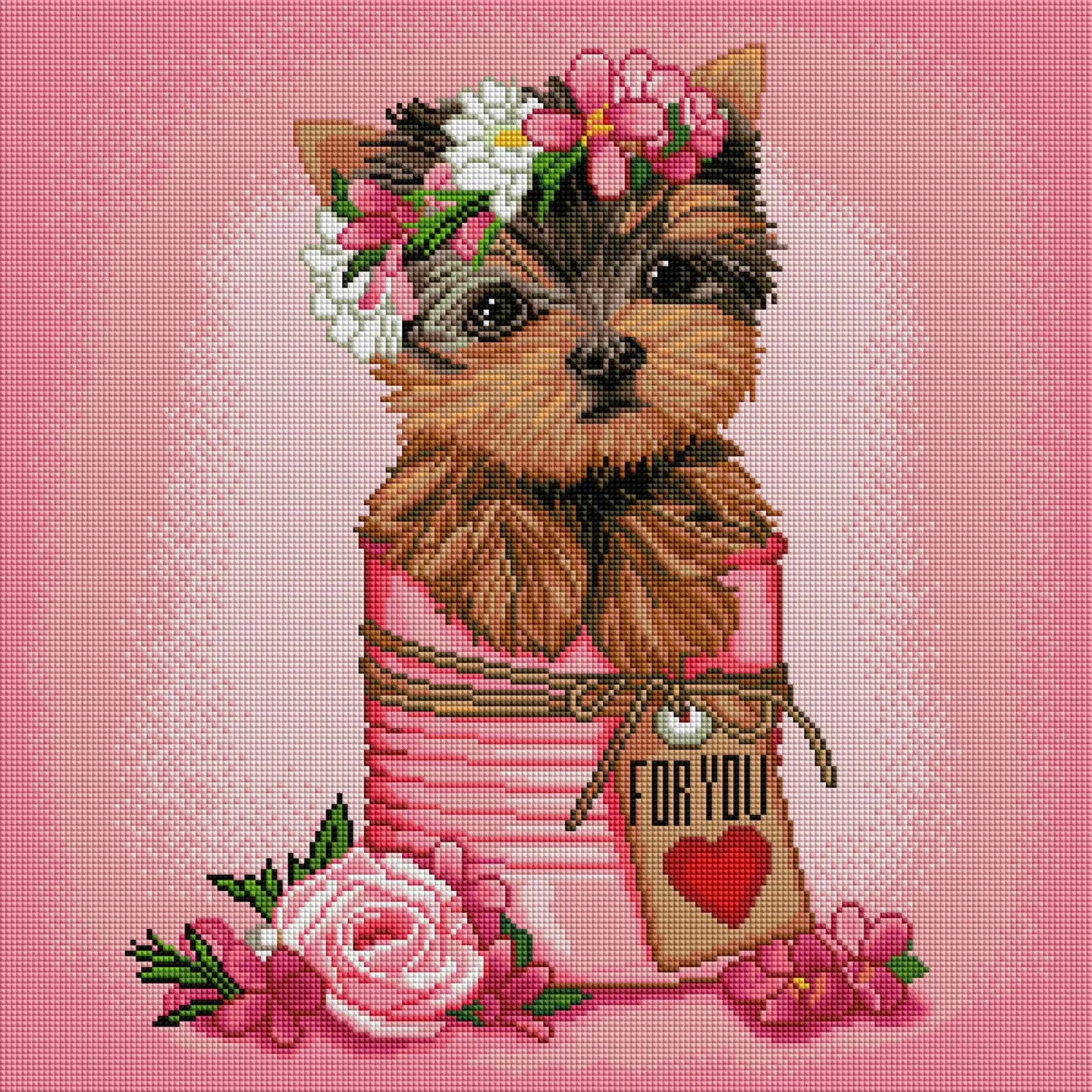 Diamond Art Club SQUARES Floral Yorkie Puppy