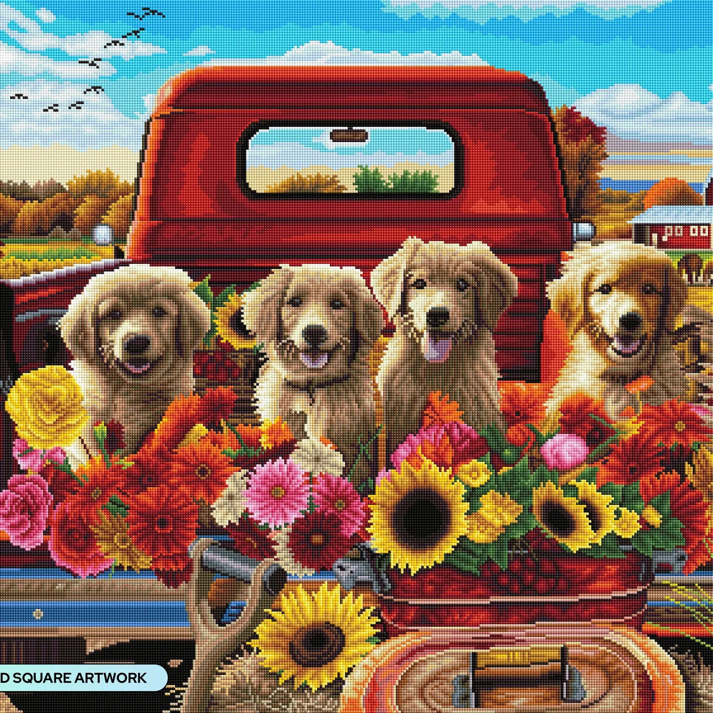 Diamond Art Club SQUARES Puppies & Flowers
