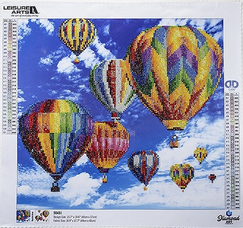 Paint a sky full of colors when you dazzle this Hot Air Balloon Diamond Painting! Start diamond painting with Diamond Dotz! Paint with beautiful 13 faceted diamonds onto high quality color printed fabric, fashioning your own shimmering artwork to decorate your wall. Place your gems on the pre-printed adhesive chart and see the sparkling results. Using easy-to-follow instructions and handy tools like a comfort grip stylus and wax caddy, you can dip, dot, and dazzle with diamonds. Experience colorful landscapes from afar with the brilliant blues and yellows of this Hot Air Balloon Diamond Dotz kit.