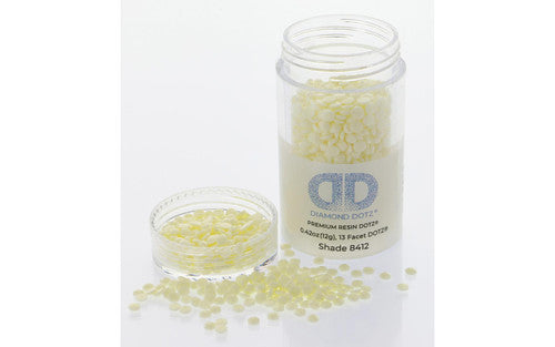 Scratch resistant resin dot gems have 13 facets for a diamond like effect.