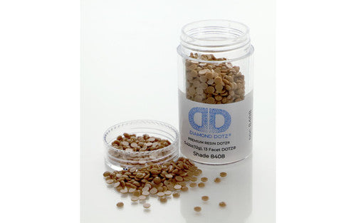 Scratch resistant resin dot gems have 13 facets for a diamond like effect.