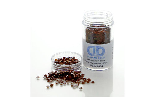 Scratch resistant resin dot gems have 13 facets for a diamond like effect.