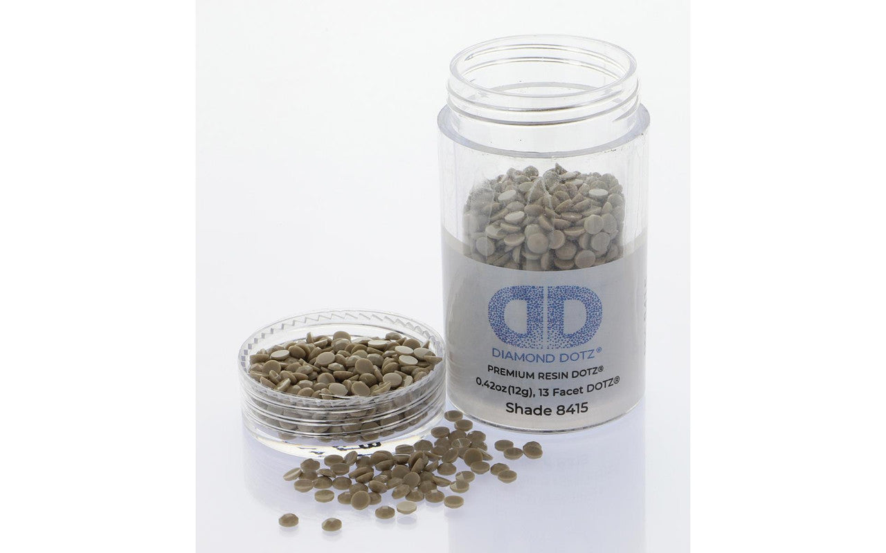 Scratch resistant resin dot gems have 13 facets for a diamond like effect.