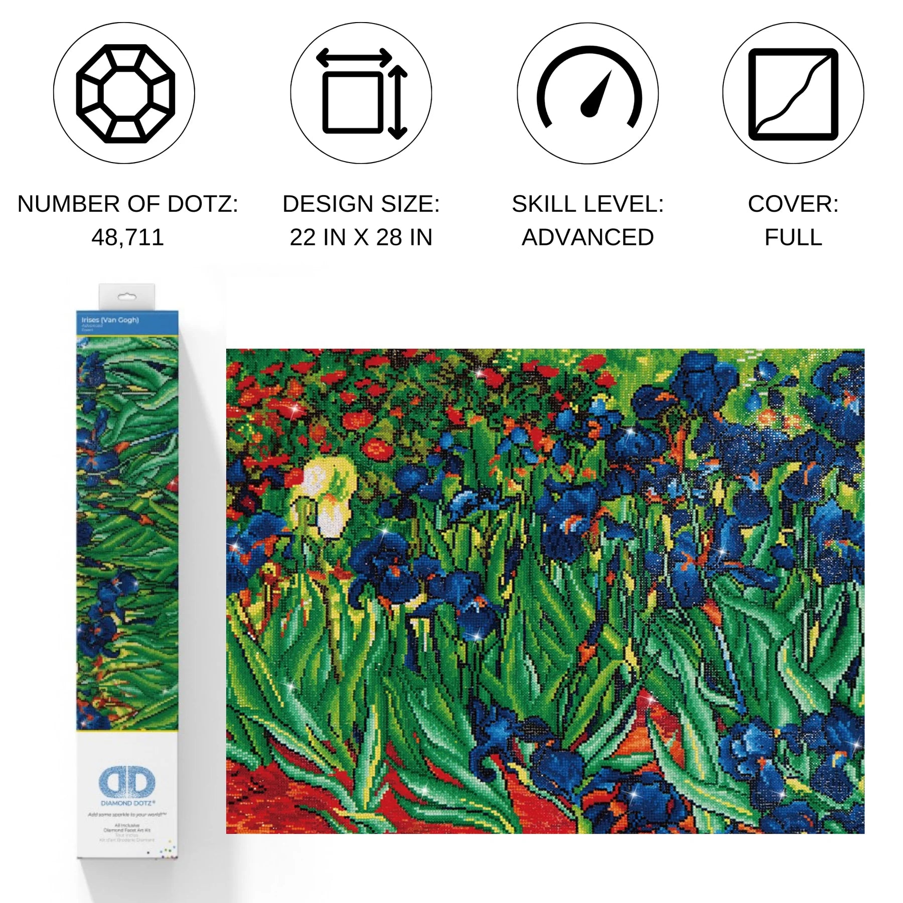 Bursting with color and movement the Irises (Van Gogh) diamond painting kit transforms one of Van Gogh’s most beloved works into a shimmering masterpiece. Designed for experienced crafters this full-coverage project is ideal for lovers of Diamond Painting Kits for Adults and diamond art Van Gogh.