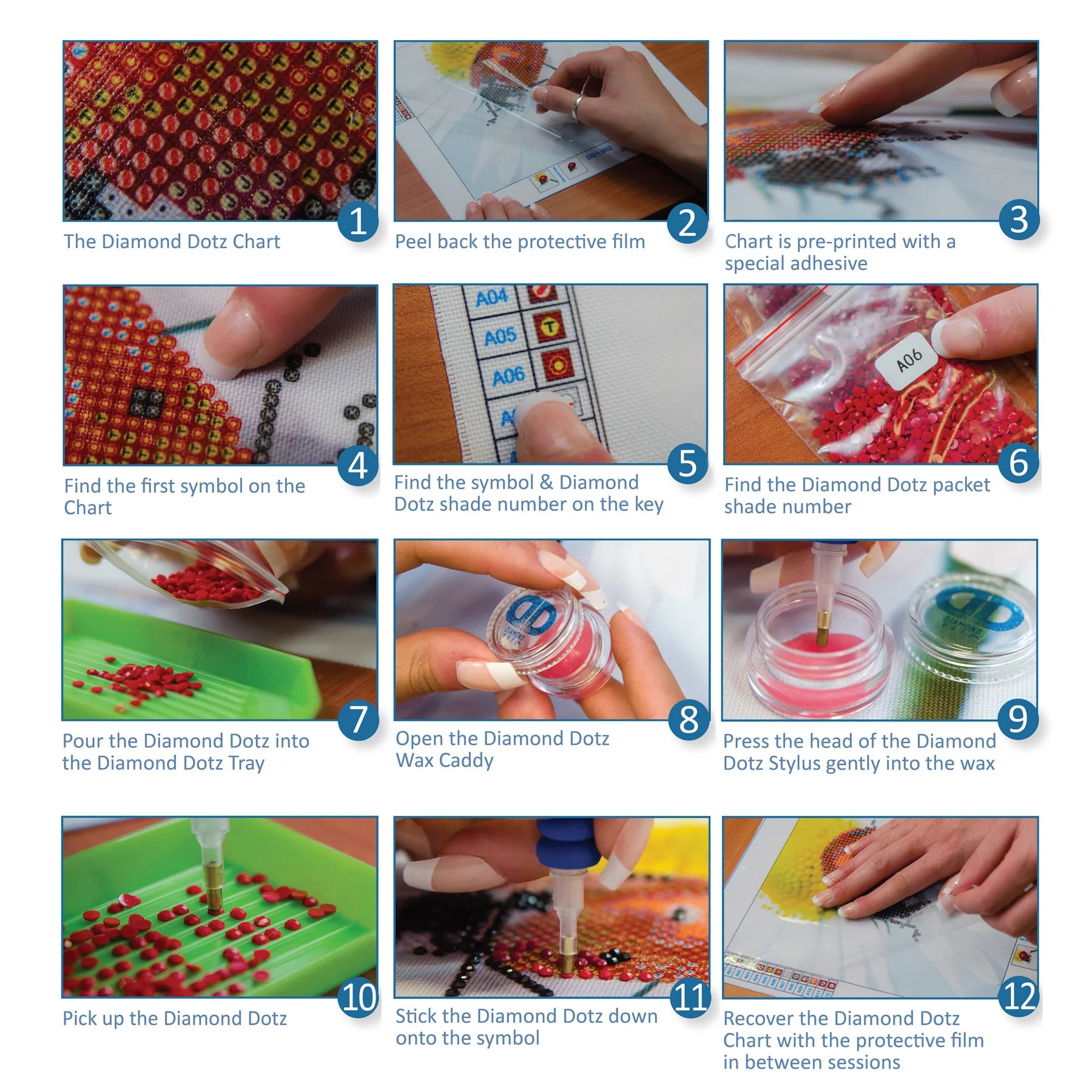 - Genuine DIAMOND DOTZ® – our signature, brilliantly faceted resin gems, pre-sorted by shade for a smoother, faster start.