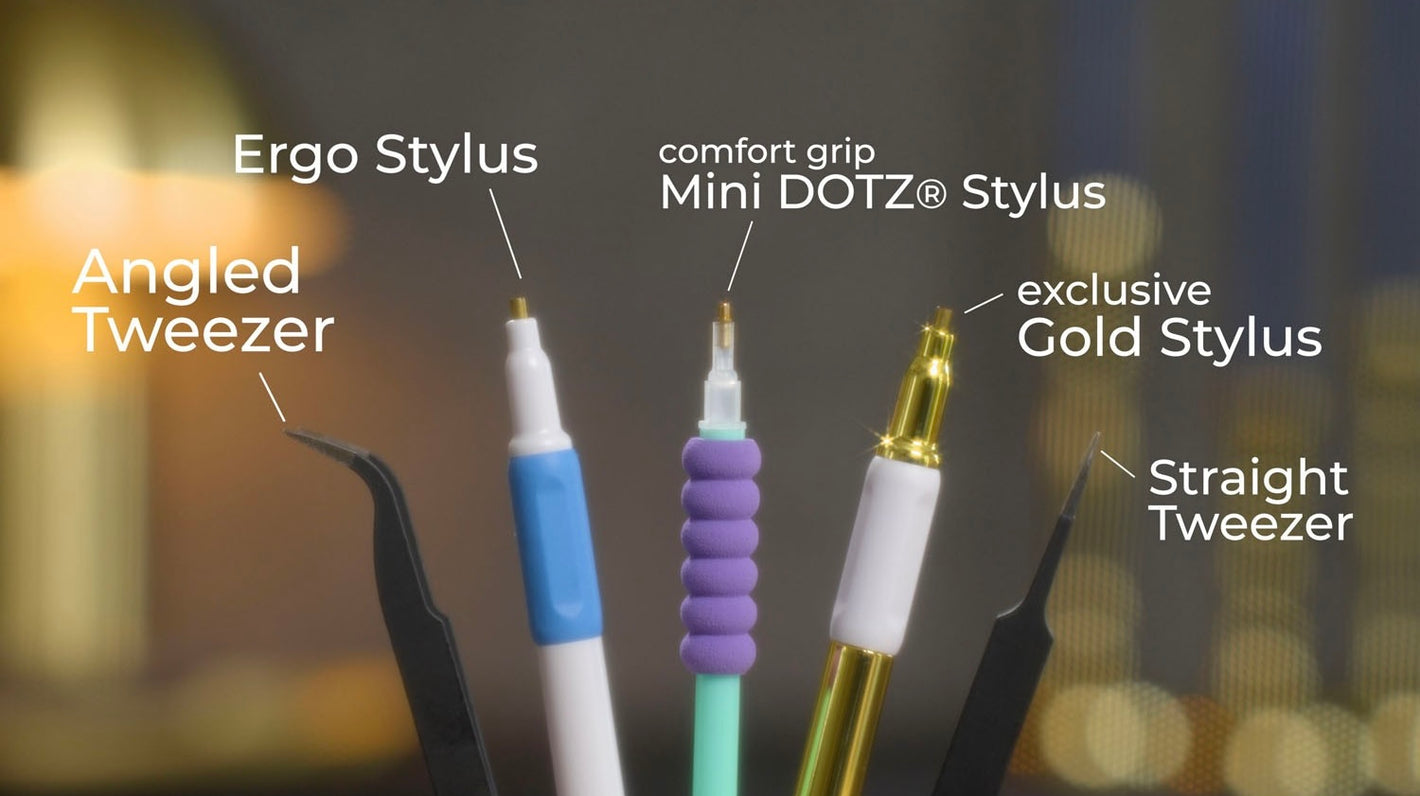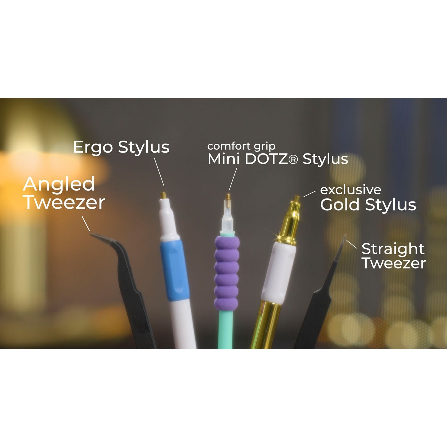 Masterclass projects include an exclusive variety of tools for the easy change from regular dotz to mini dotz. Multi gem stylus heads and gem straightening tools are also included!