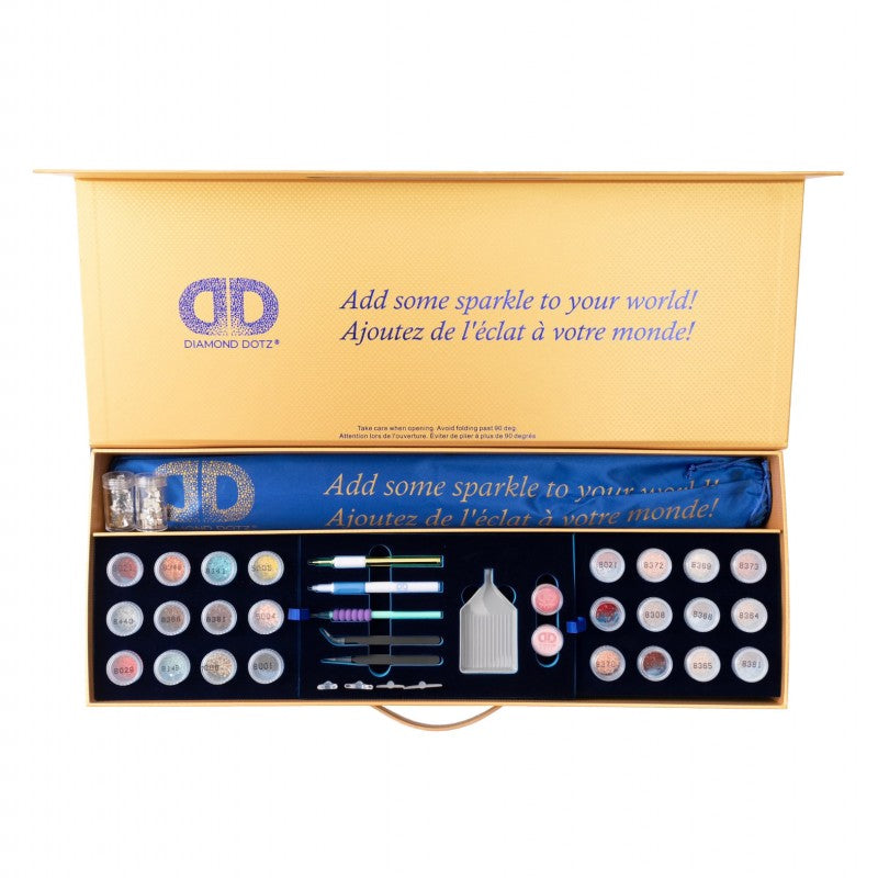 The Diamond DOTZ® Masterclass series is a premium diamond painting kit collection offering advanced diamond painters an unparalleled diamond painting experience. Each Masterclass kit features an exquisite design, challenging diamond painting techniques and luxurious materials. From the moment the gold embossed travel case is opened, until the last dot is placed, Masterclass provides diamond painting enthusiasts with a one-of-a-kind opportunity to push their skills and complete a magnificent work of art.