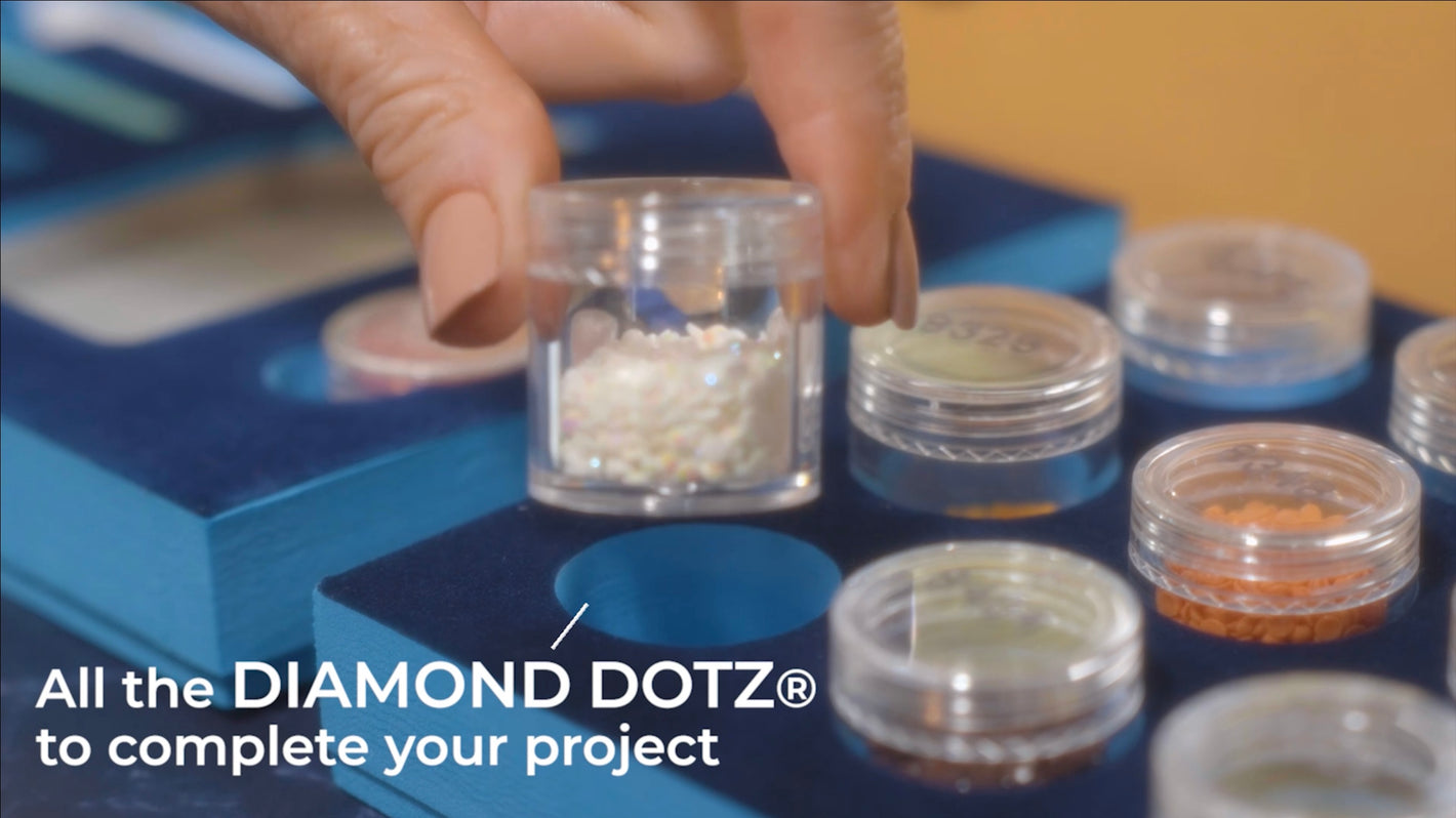 • DIAMOND DOTZ® pre-sorted by shade and packed in reuseable cylinders