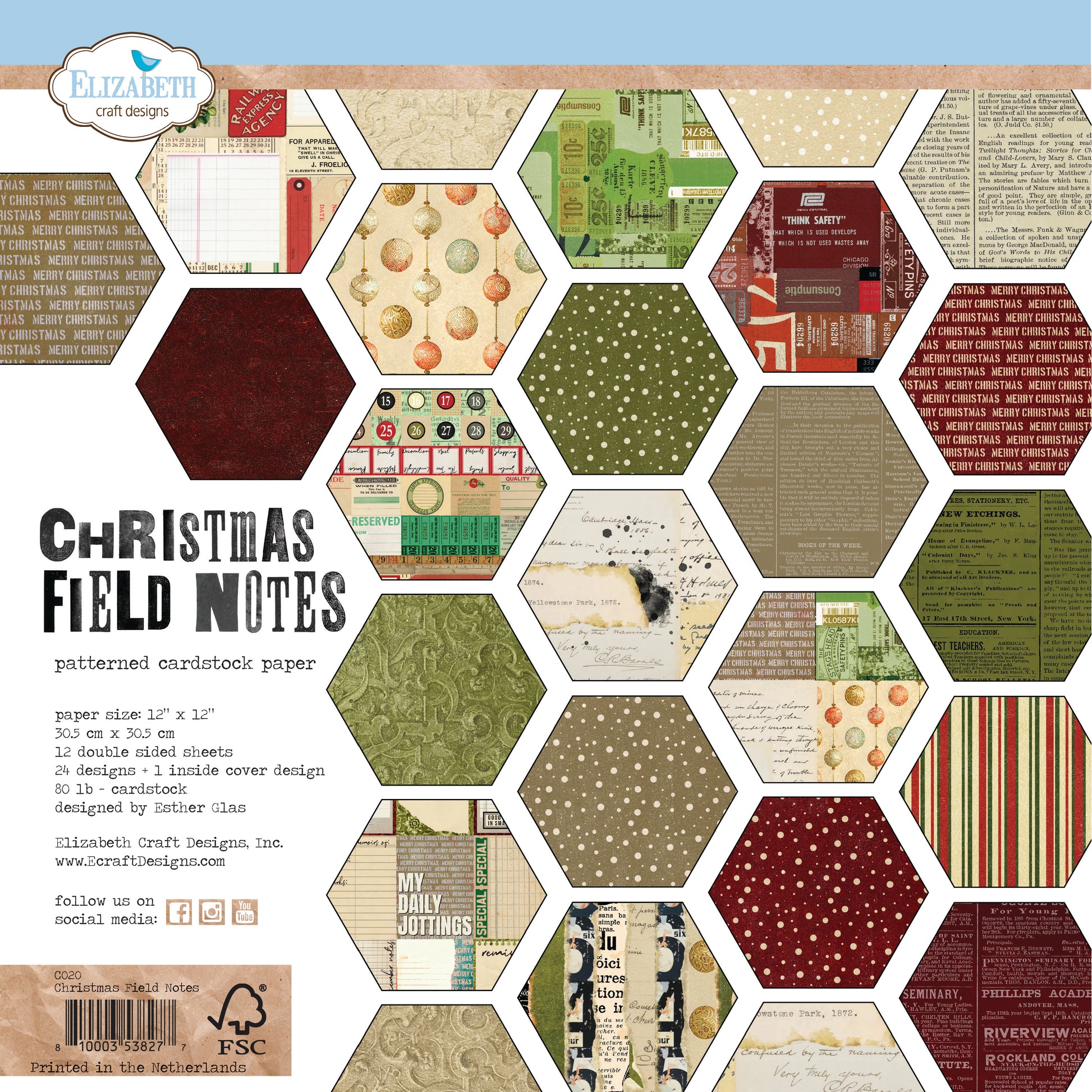 1 x Christmas Field Notes 12x12 Paper Pack, 80 lb Printed Cardstock(C020)