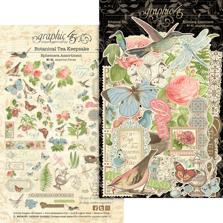 Escape to a serene garden haven with Graphic 45’s Botanical Tea – Keepsake Edition Pack! This 152-piece collector’s set invites you into a lush green world filled with soft pink peonies, powder blue butterflies, and delicate hummingbirds flitting through the blossoms—all while you enjoy a charming cup of tea. With its vintage elegance and refreshing palette, Botanical Tea is steeped in timeless beauty.