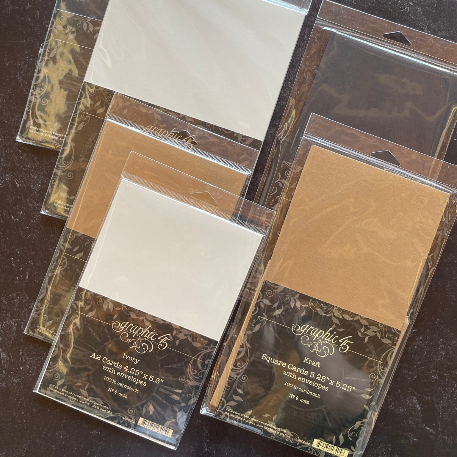 Graphic 45 Kraft Square Cards 5 1/4” x 5 1/4” With Envelopes