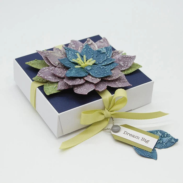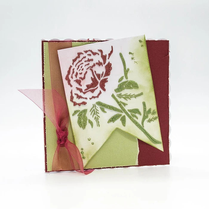 The Nuvo Expanding Mousse is perfect for adding unique textured details to your mixed media cards and projects. Available in 7 metallic colours, each provides a lustrous shine thanks to the highly-pigmented mica powder. It can be used as a normal embellishment mousse with or without a stencil, but when the heat is added the mousse expands and is covered with a bubbling texture.